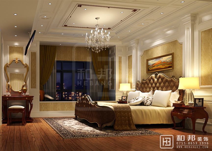 本設計為典型的美式風格,豪華大氣,尊貴典雅,簡潔的設計,空曠的視野,讓人樂在其中。整個空間氣息以歐式的高貴優雅氛圍為主題,用現代的設計手法表現。