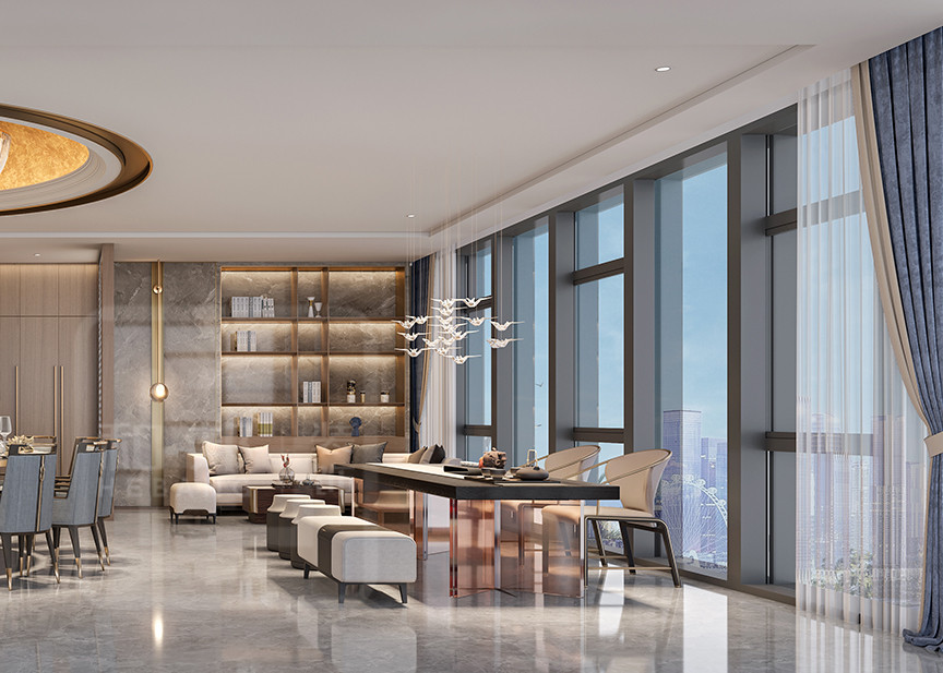 本案注重空間的層次感與跳躍感,搭配上那些簡潔簡單的造型,增添些不同元素,讓整個空間變得更豐富,既顯得有格調又不會讓人感覺太壓抑。